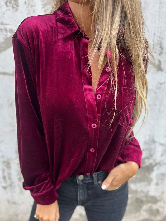 Damska koszula z długim rękawem z kołnierzem z cekinami