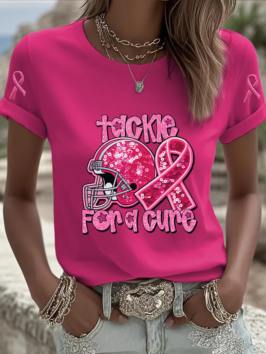 Damska koszulka codzienna z cekinami świadomości raka piersi