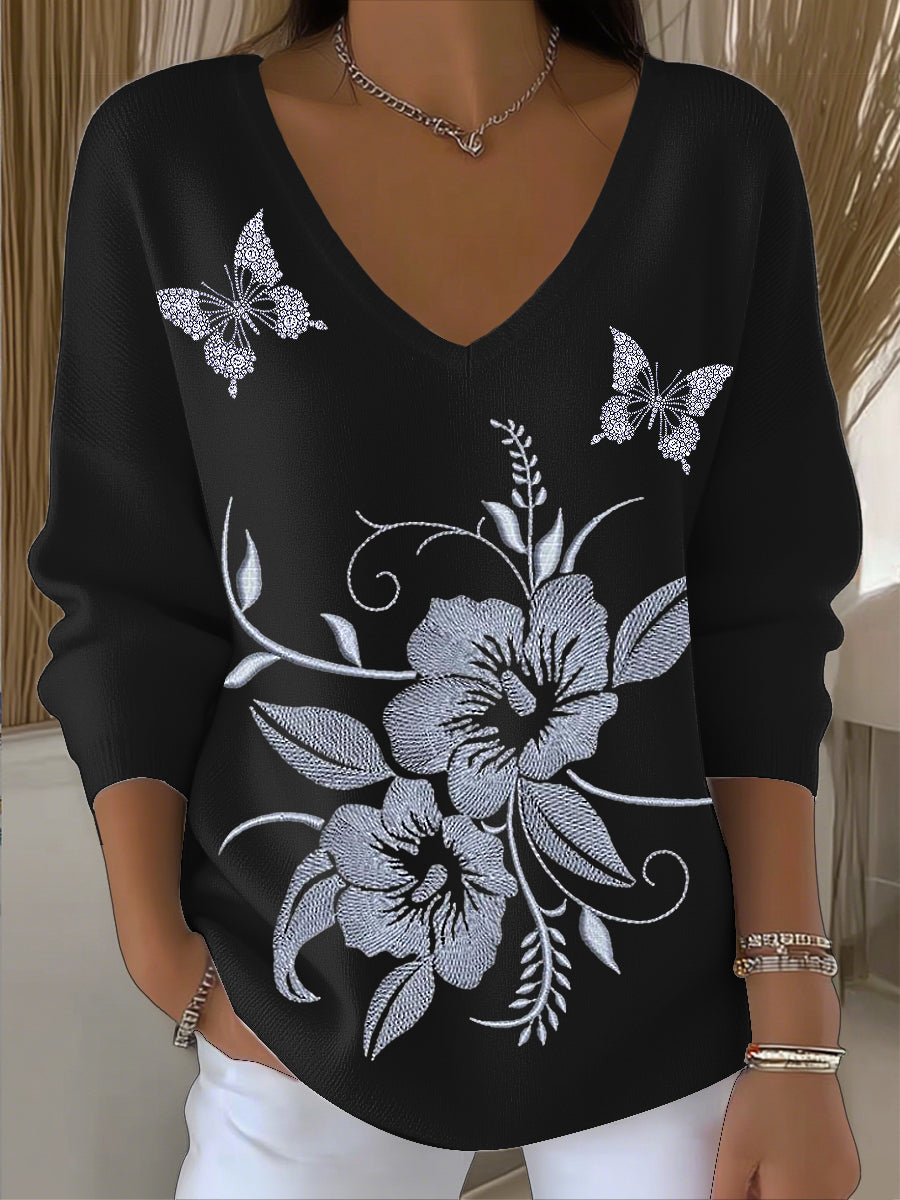 Damska koszulka z motylem w kwiaty w stylu vintage