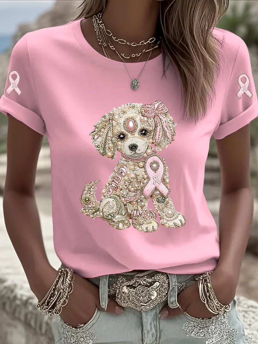 Damska koszulka z nadrukiem szczeniaka wstążki