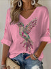 Damska koszulka z rakiem piersi w połowie rękawa z dekoltem w szpic z nadrukiem Hummingbird