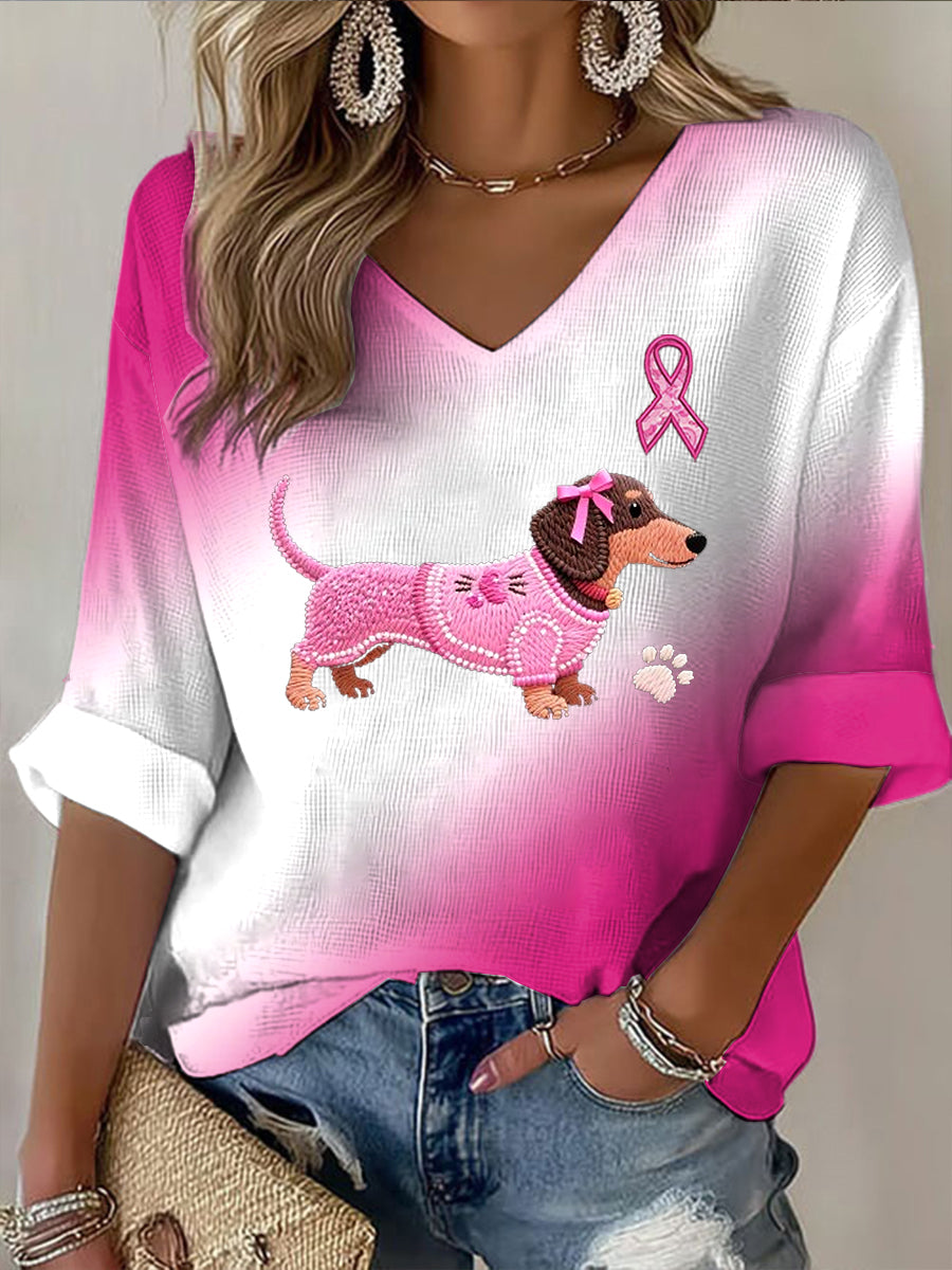 Damska różowa koszulka z długim rękawem z nadrukiem jamnika