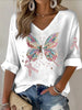 Damska różowa wstążka motyla Rhinestone Print Casual Koszulka z długim rękawem