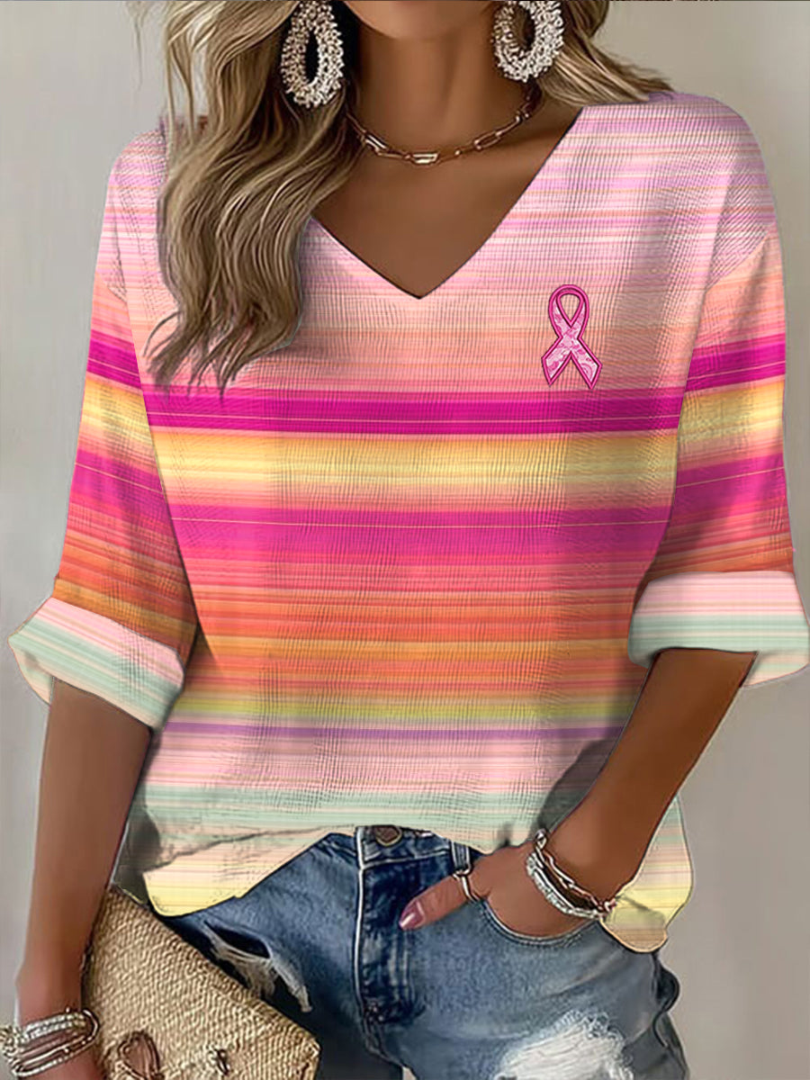 Damska różowa wstążka print print Casual Koszulka z długim rękawem