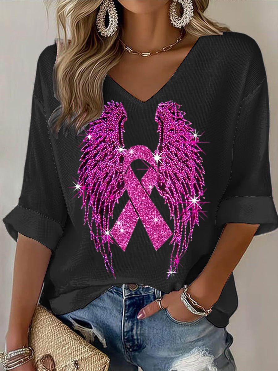 Damska świadomość raka piersi Top z dekoltem w szpic