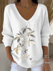 Damski biały sweter w stylu europejskim z dekoltem w szpic z uroczym haftem liści, modny i wygodny, łatwy do stworzenia codzienny wygląd