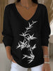 Damski czarny sweter z dekoltem w szpic w stylu europejskim z prostym haftem w kształcie liści, modny i wygodny, łatwy do stworzenia codzienny wygląd