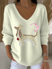 Damski diamentowy pies haftowana różowa wstążka Sweter z dekoltem w serek