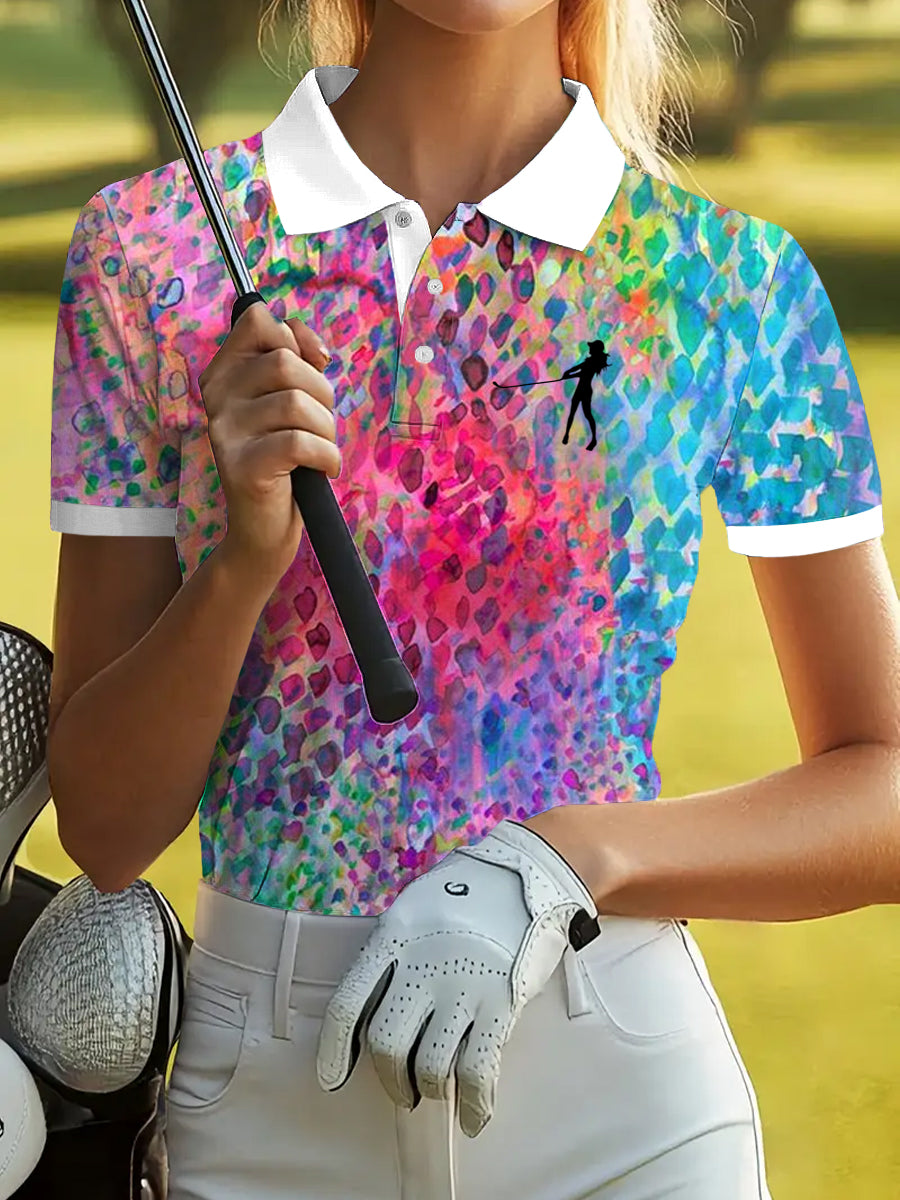 Damski golf kolorowy abstrakcyjny nadruk koszulka polo
