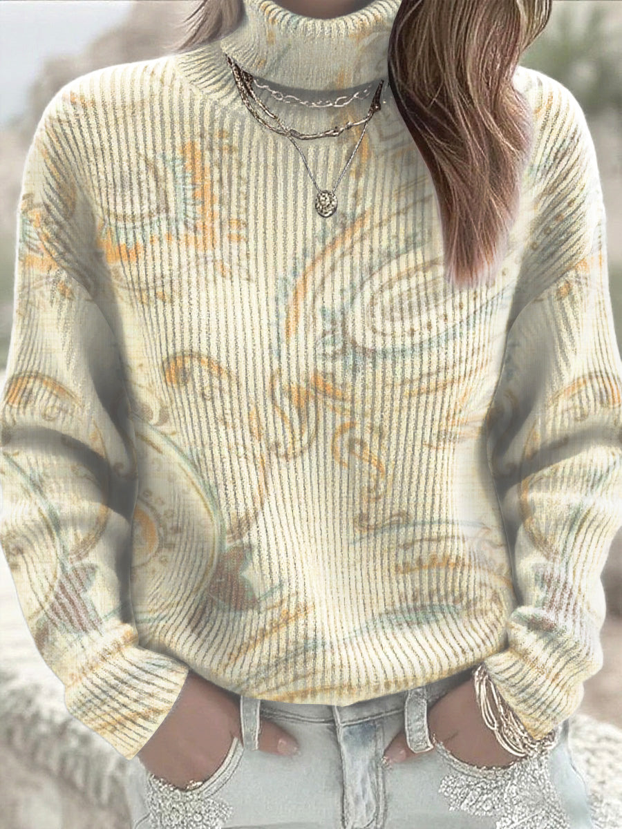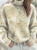 Damski jasnożółty sweter z golfem w kwiaty