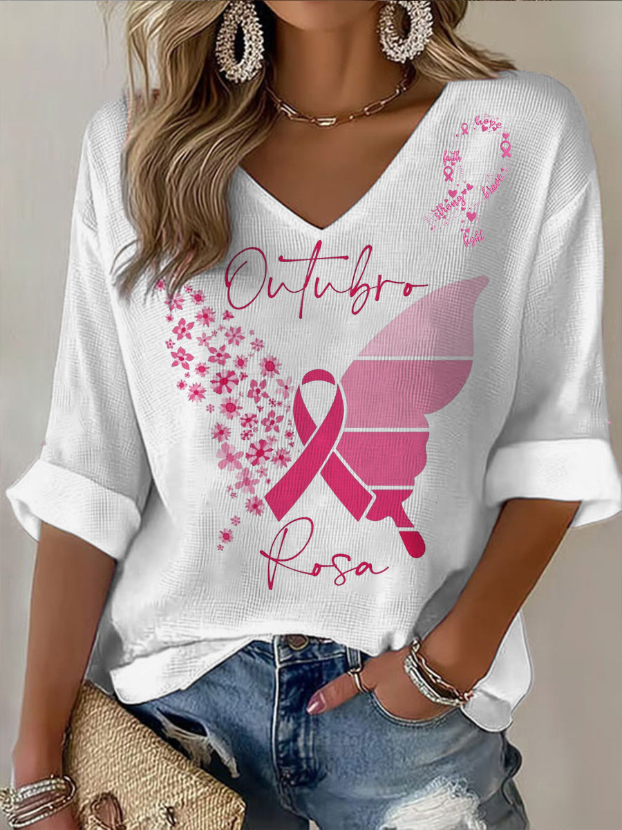 Damski motyw z motywem raka piersi z dekoltem w szpic Krótka koszulka