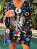 Damski retro polski etniczny kwiatowy biały orzeł z nadrukiem casualowy sweter z dekoltem w serek