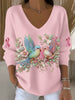 Damski romantyczny top z kolcowem Rhinestone Art V-Neck