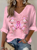 Damski różowy motyl Casualowy top z dekoltem w szpic
