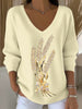Damski sweter w stylu europejskim w kolorze jasnożółtym z dekoltem w szpic z prostym i modnym kwiatowym haftem, nowoczesny i wygodny, łatwy do kontrolowania codzienny ubiór