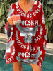 Damski Vintage Polski Biały Orzeł z nadrukiem Casualowy Sweter z dekoltem w szpic