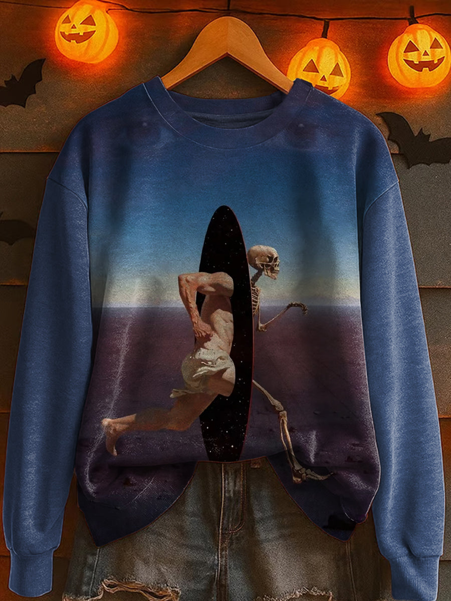 Halloweenowa bluza z długim rękawem i okrągłym dekoltem