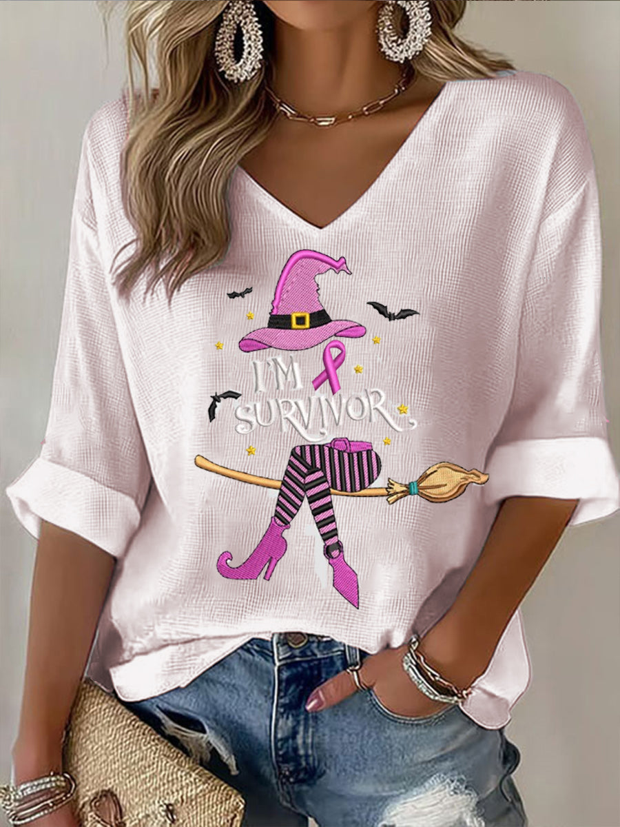 Halloweenowa czarownica damska z dekoltem w szpic Casual krótka koszulka