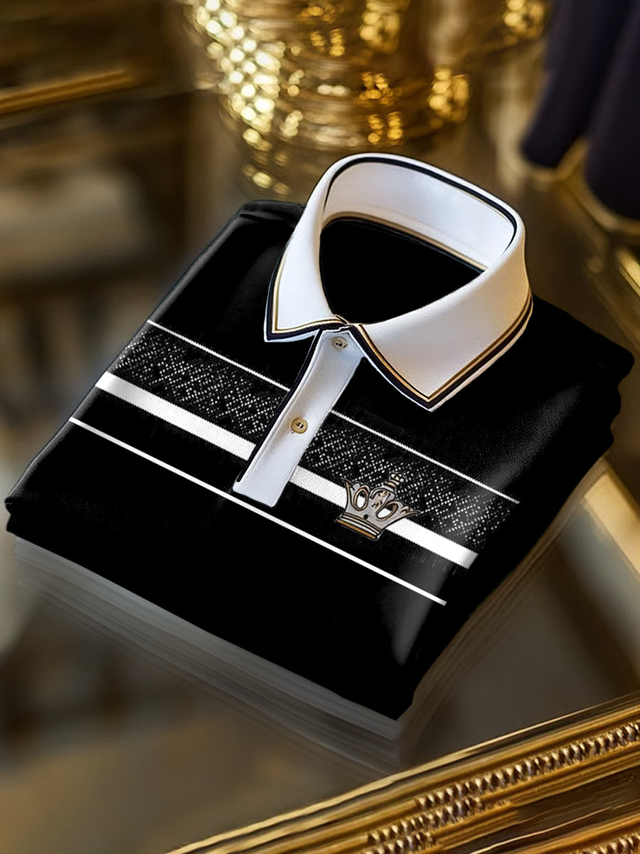 Klasyczna koszulka POLO z krótkim rękawem w paski Splicing Print Business