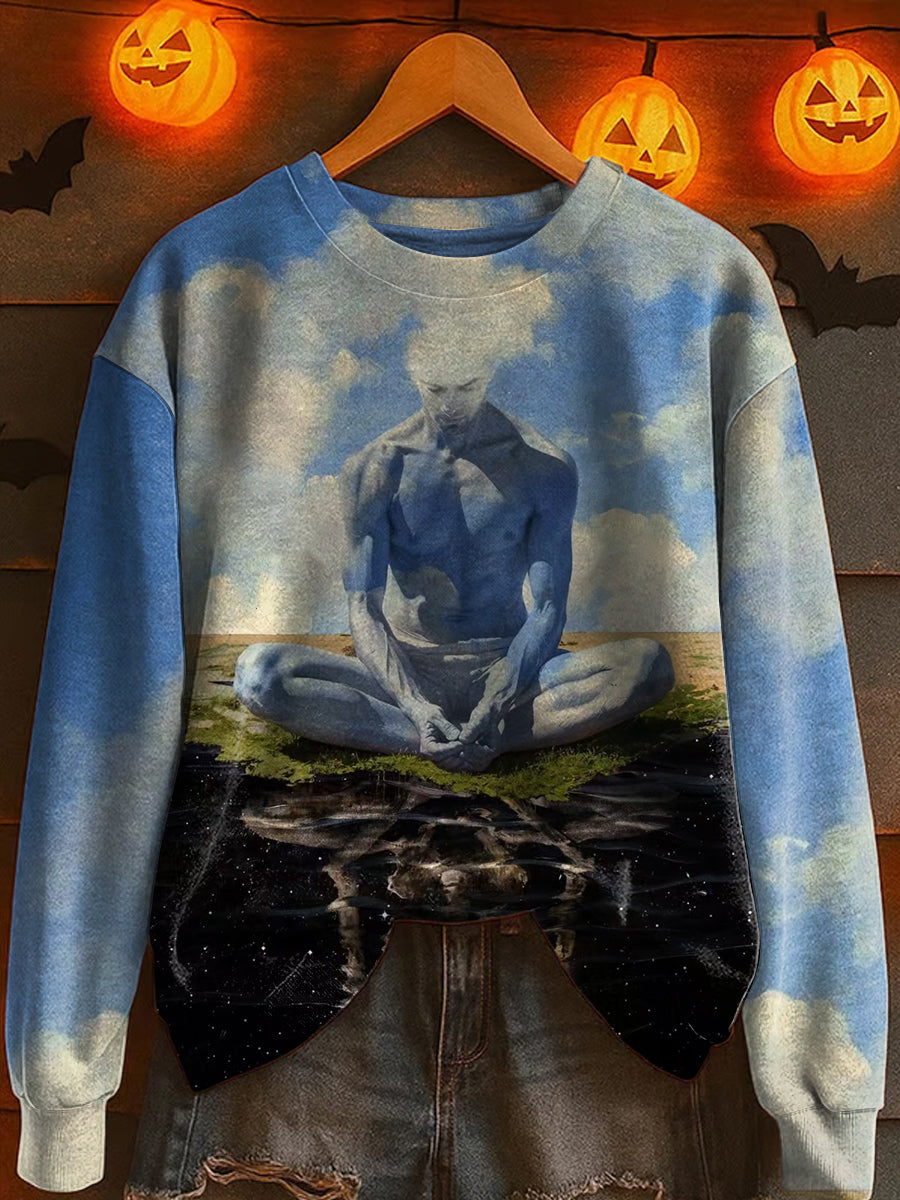 Luźna bluza z długim rękawem w stylu retro z okrągłym dekoltem