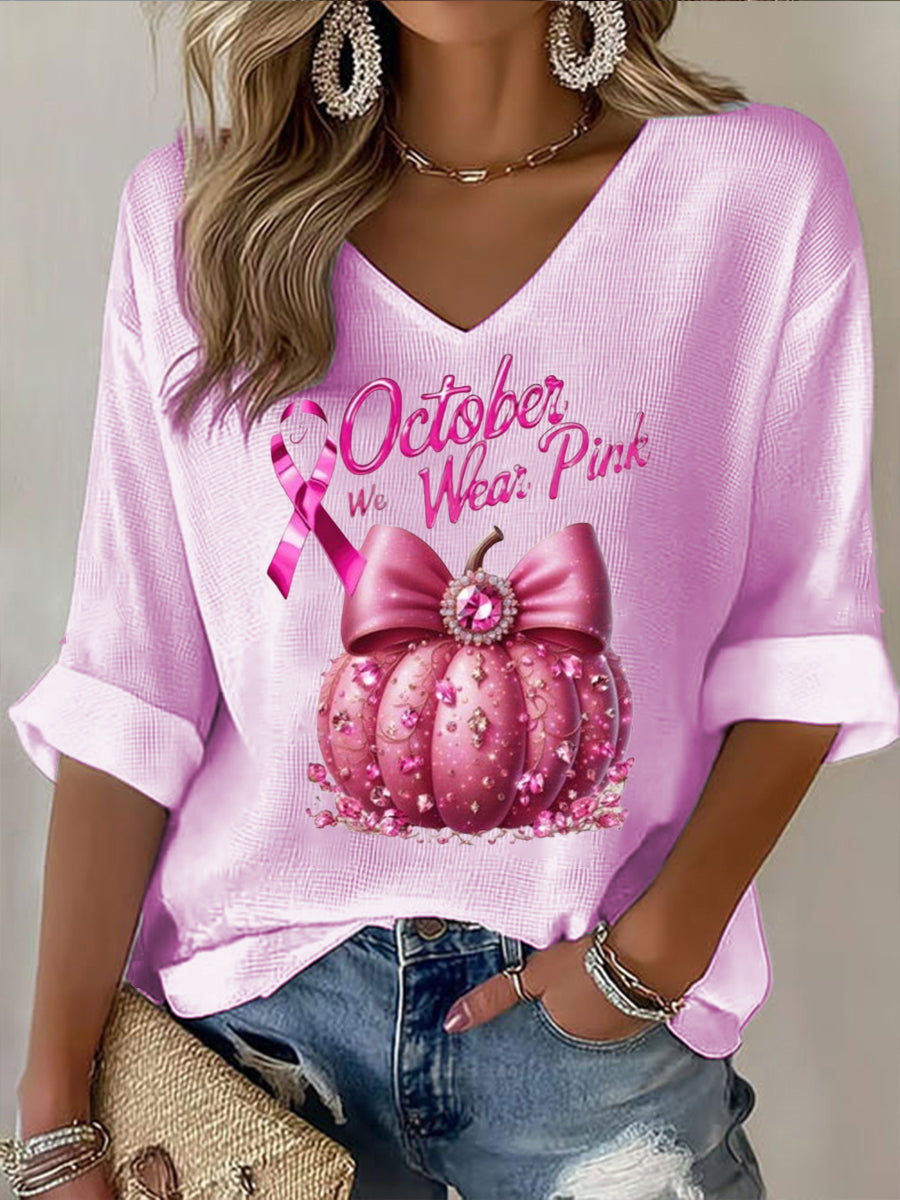 Magiczny wzór dyni Damski dekolt w szpic Casual krótki T-shirt