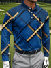 Męska abstrakcyjna geometryczna koszulka polo z długim rękawem w stylu retro