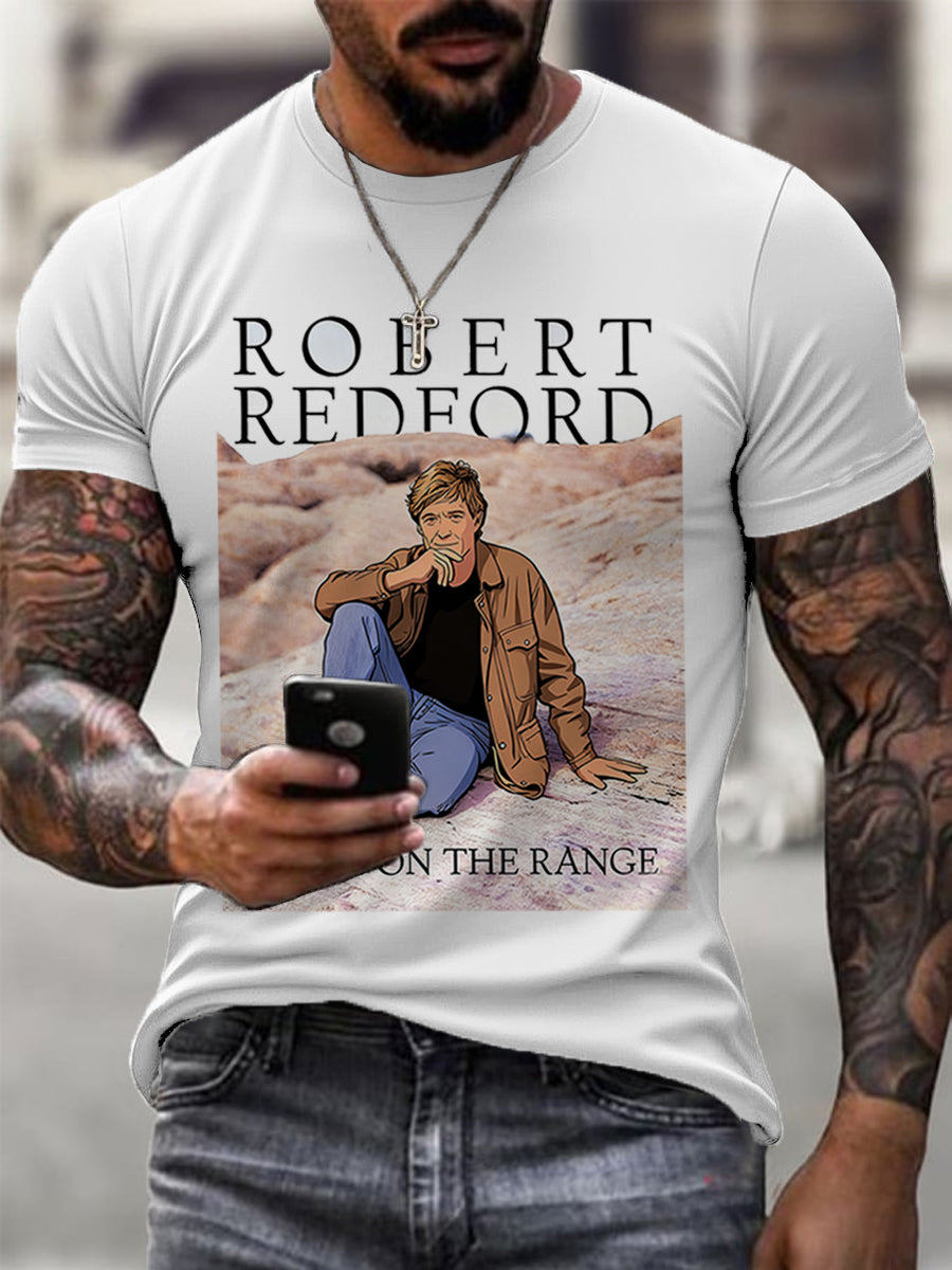 Męska casualowa biała koszulka z ilustracją „ On the Range ”Roberta Redforda, hołd dla Roberta Redforda
