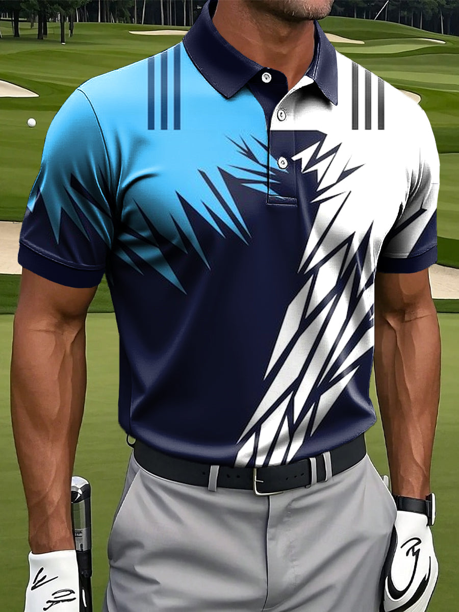 Męska kolorowa koszulka polo z nadrukiem patchworku w stylu retro na co dzień