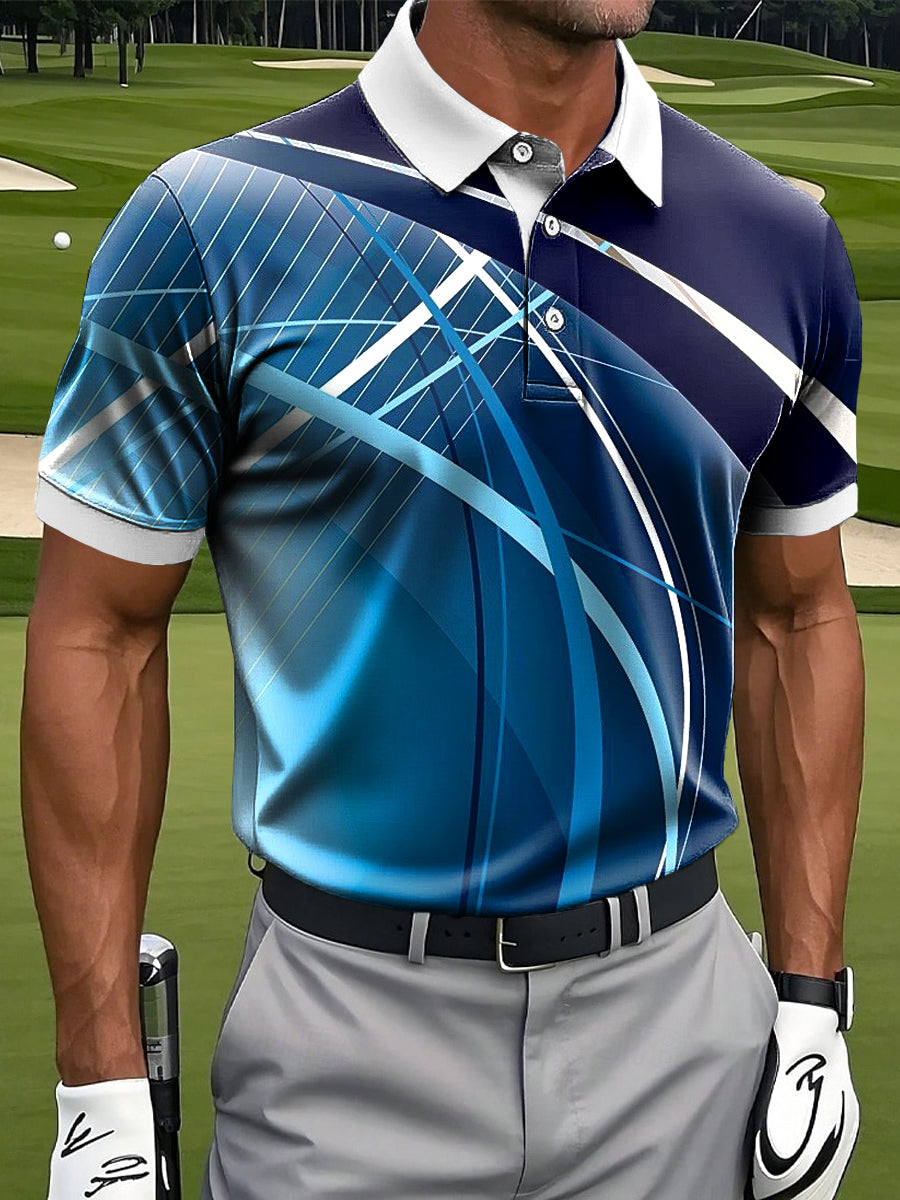 Męska kolorowa retro abstrakcyjna linia artystyczna drukowana casualowa biznesowa koszulka polo