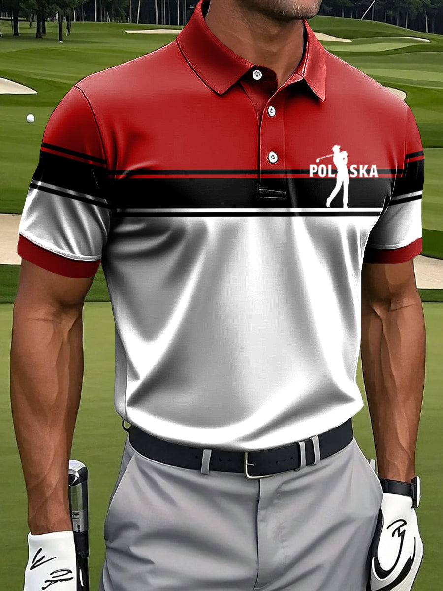 Męska koszulka polo biznesowa w stylu vintage z kolorowym nadrukiem w kolorowe paski