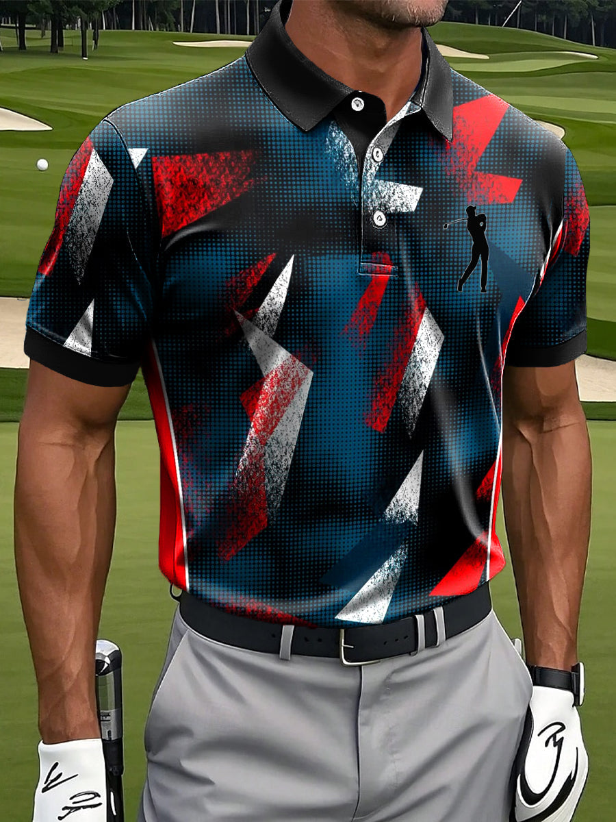 Męska koszulka polo biznesowa z nadrukiem geometrycznym w stylu retro abstrakcyjne w trudnej sytuacji