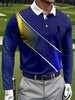 Męska koszulka polo z długim rękawem w paski gradientowe z nadrukiem artystycznym w stylu retro