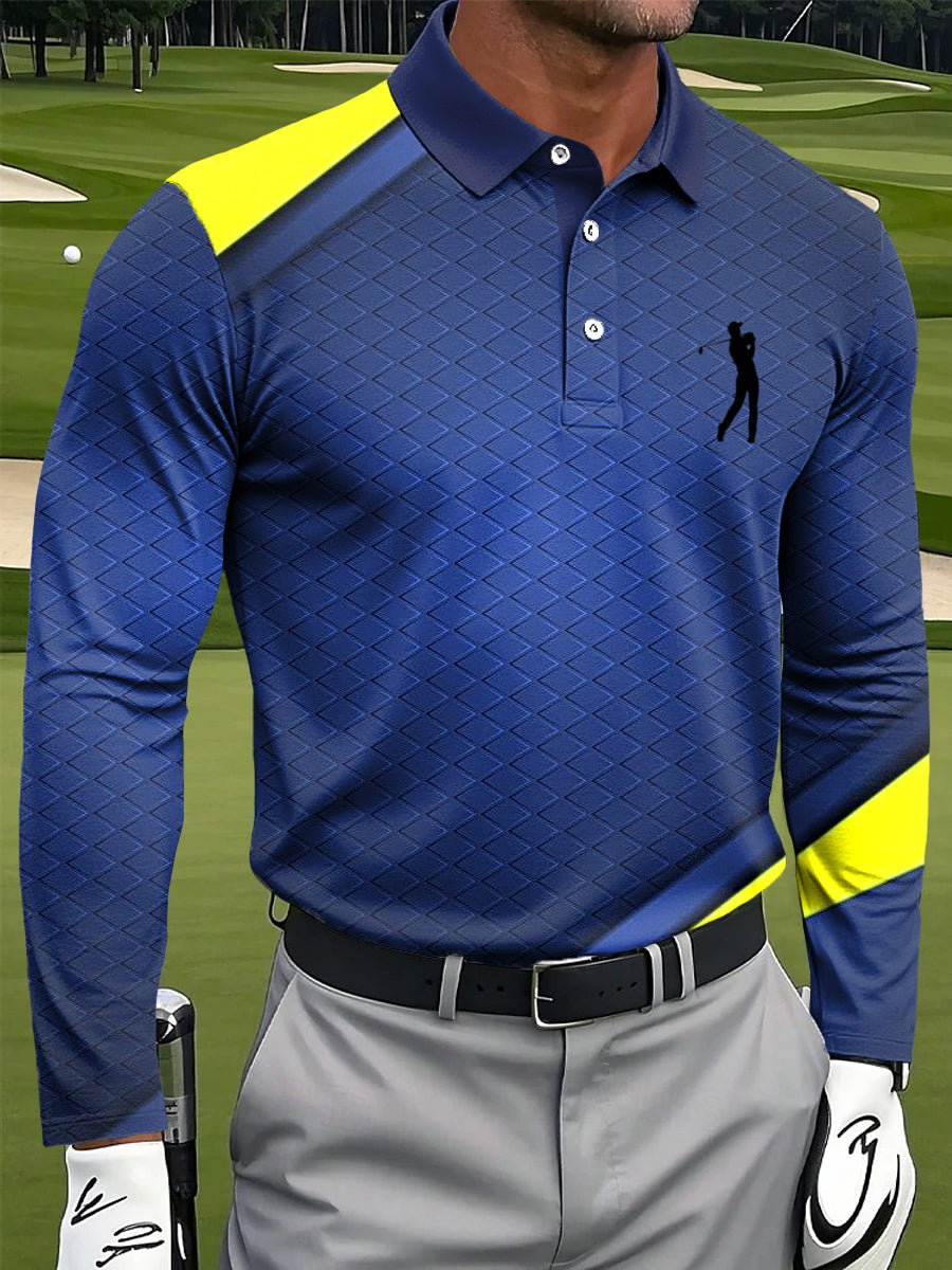 Męska koszulka polo z długim rękawem w stylu retro z geometrycznym nadrukiem artystycznym