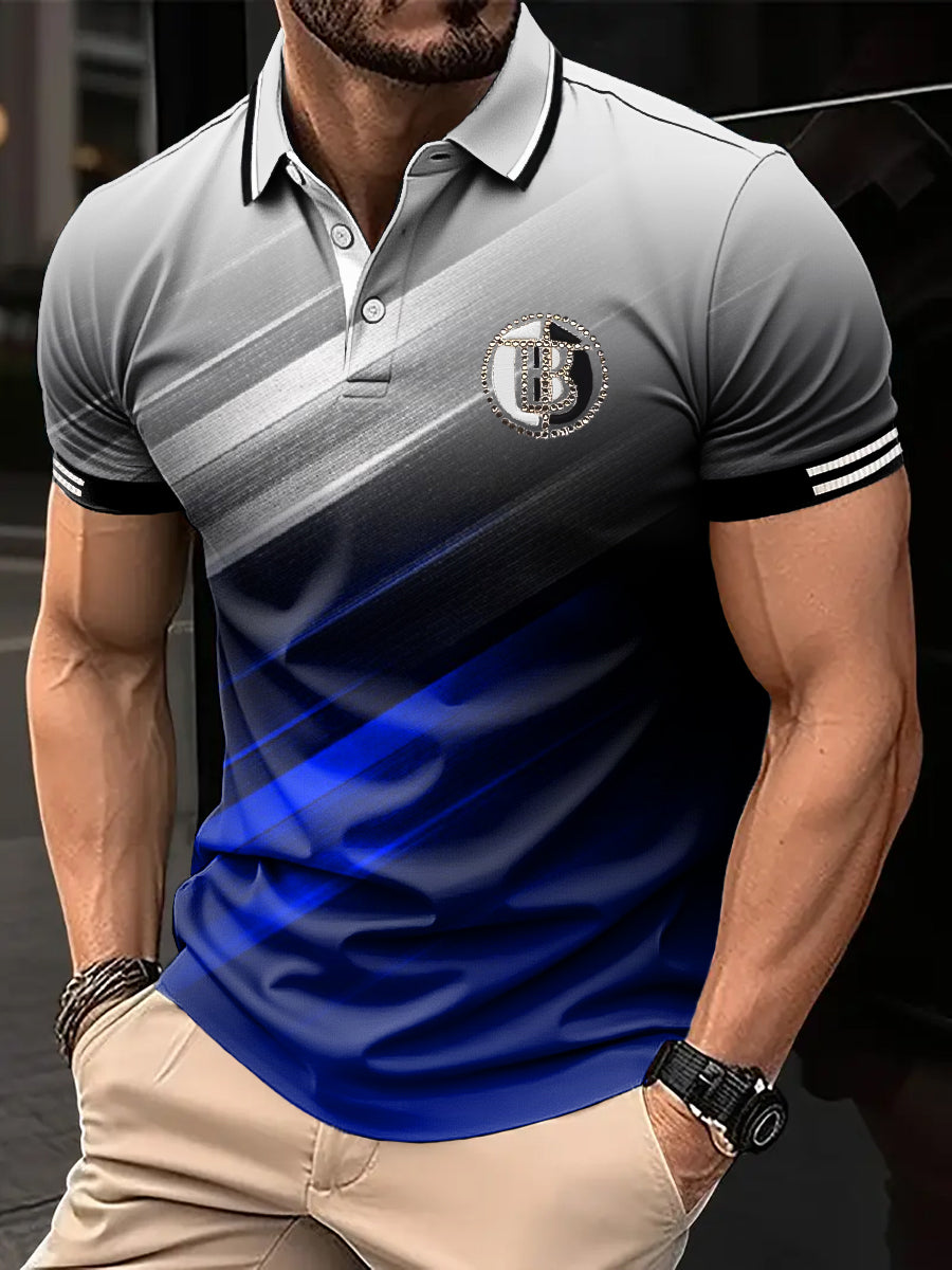 Męska koszulka polo z nadrukiem artystycznym Retro Gradient Line