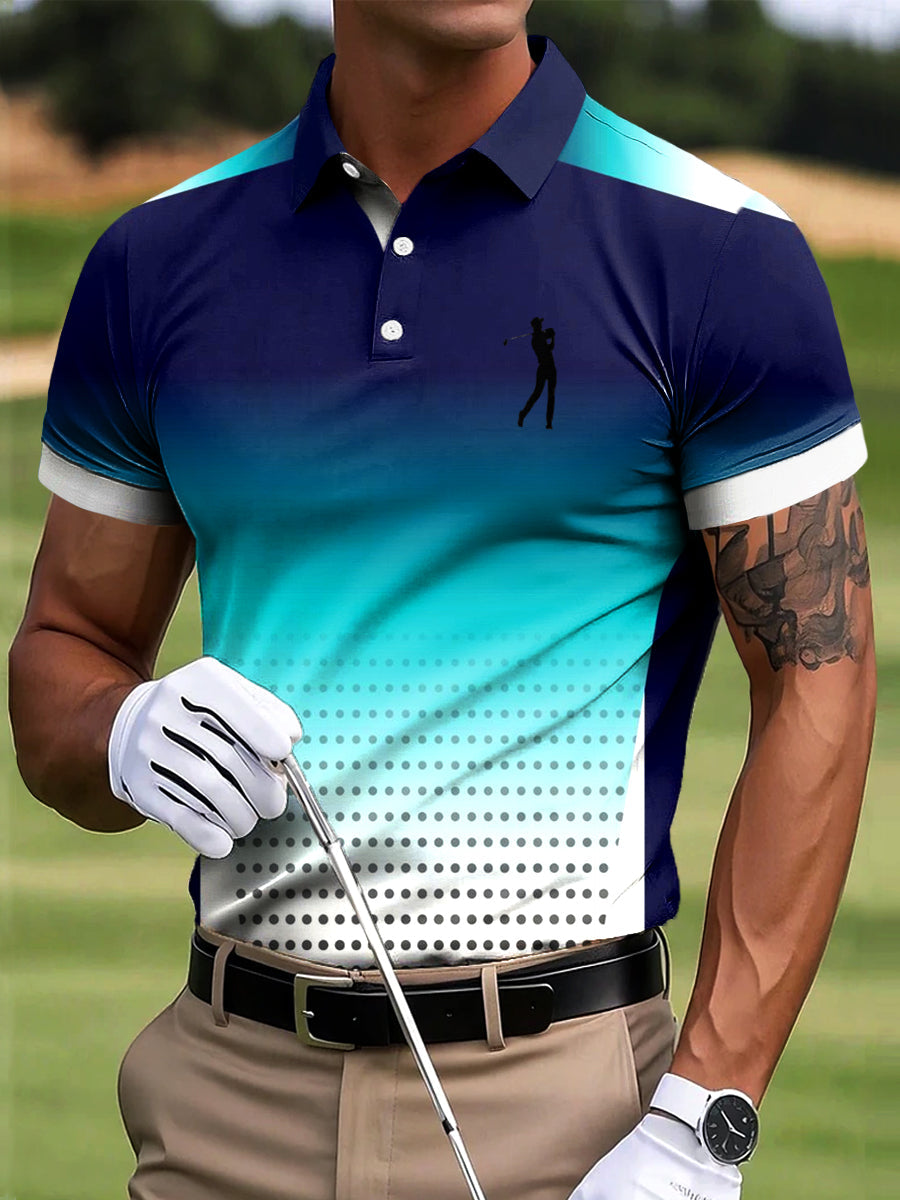 Męska koszulka polo z nadrukiem patchworku w stylu golfowym Casual
