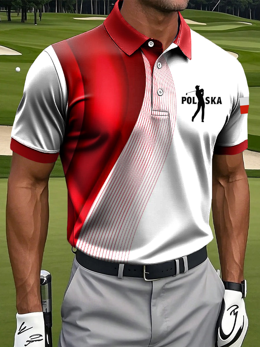 Męska koszulka polo z nadrukiem w stylu vintage z polską flagą