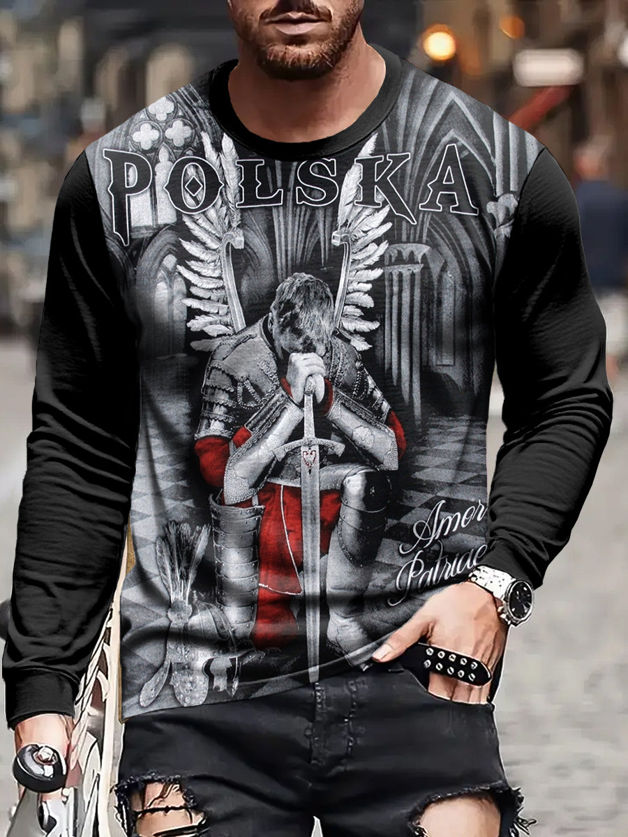 Męska koszulka z długim rękawem w stylu retro z polską flagą kawalerii