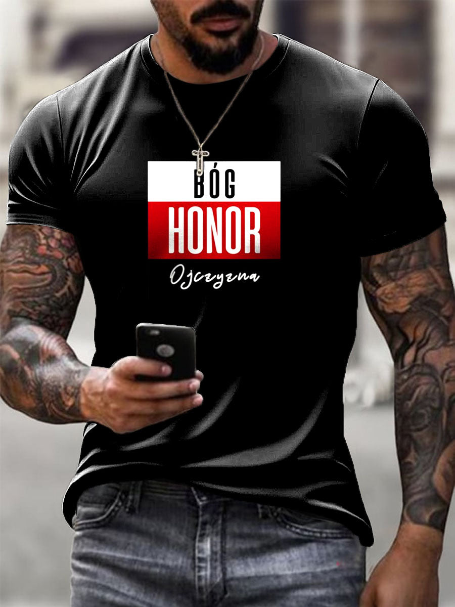 Męska koszulka z polskim orłem flaga języka polskiego Art Design