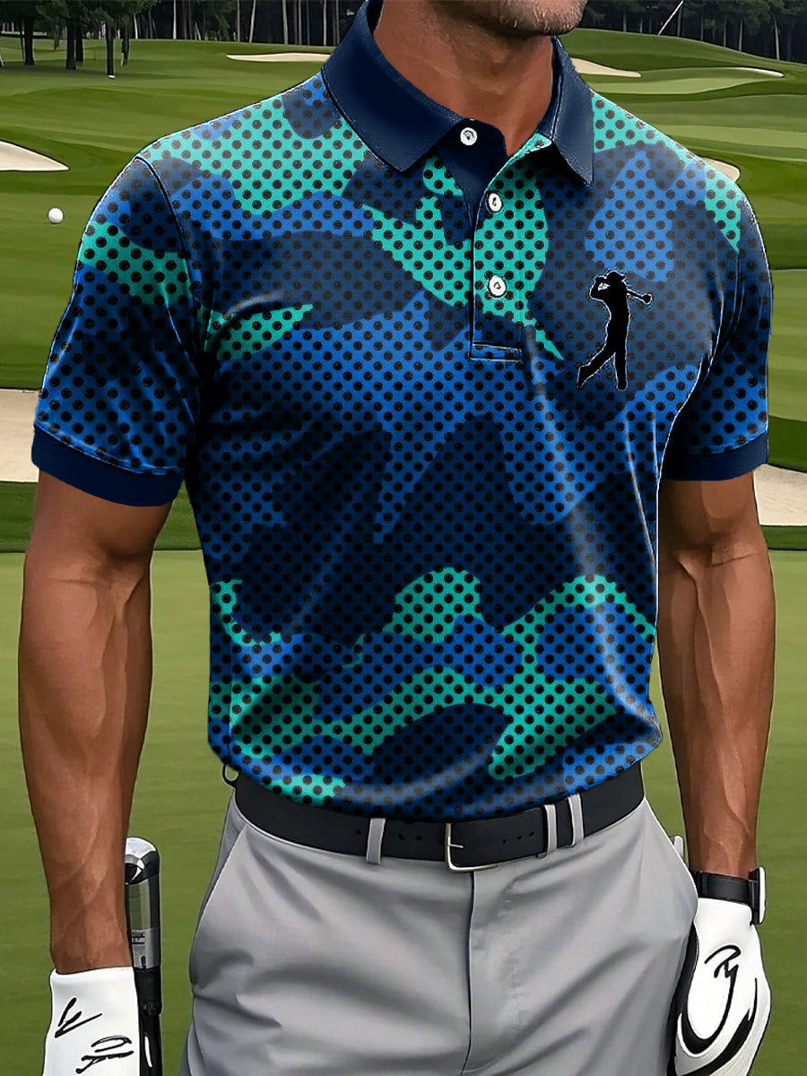 Męska retro abstrakcyjna koszulka polo z nadrukiem w kamuflażu na co dzień
