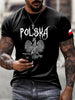 Męski Polski Orzeł Monochromatyczny List Art Print Casual T-Shirt