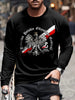 Męski Vintage Polski Orzeł Flaga Patriot Abstrakcyjny Nadruk Casual Długi Rękaw T-Shirt