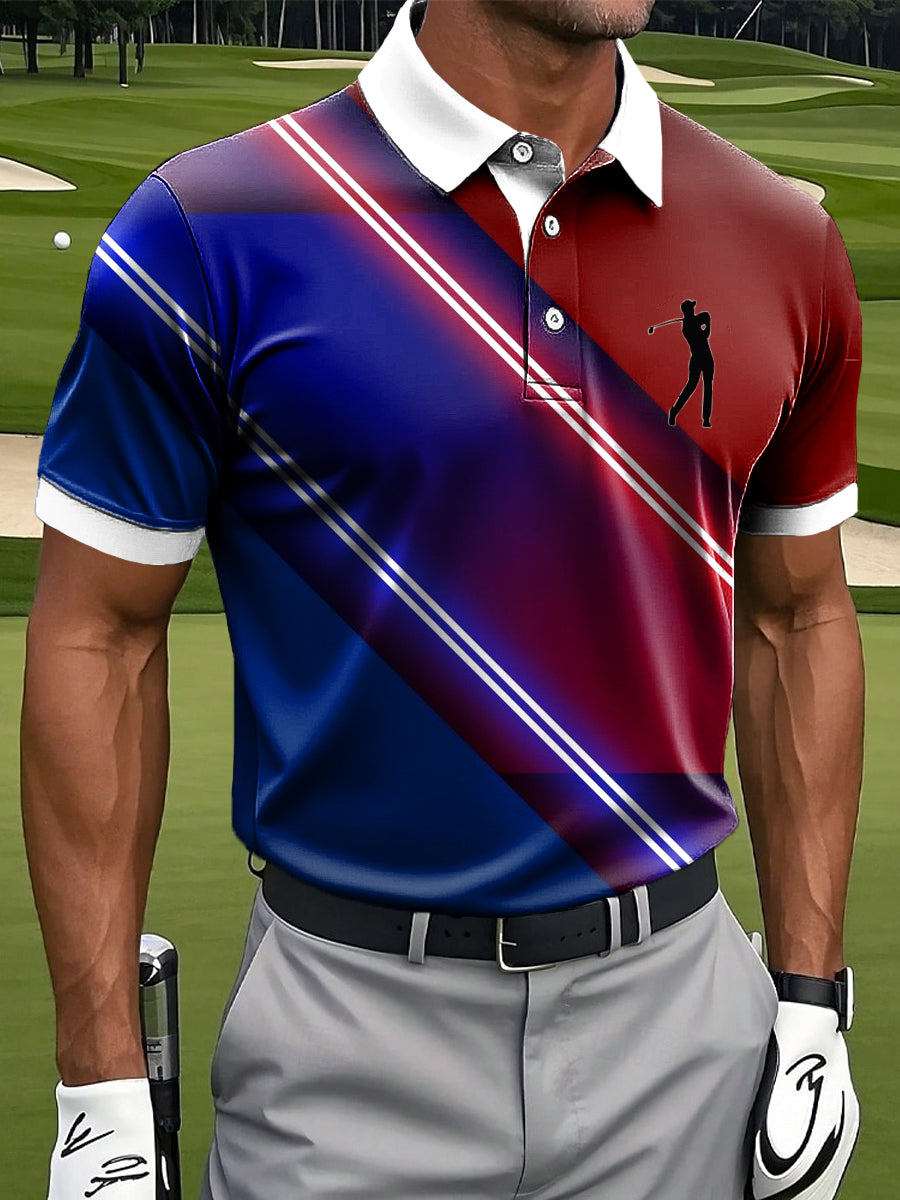 Męskie Retro Gradient Kolorowe Paski Artystyczny Nadruk Casual Biznesowa Koszulka Polo