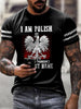 Męskie Retro Polski Biały Orzeł Paski Patchwork Print Casual T-Shirt