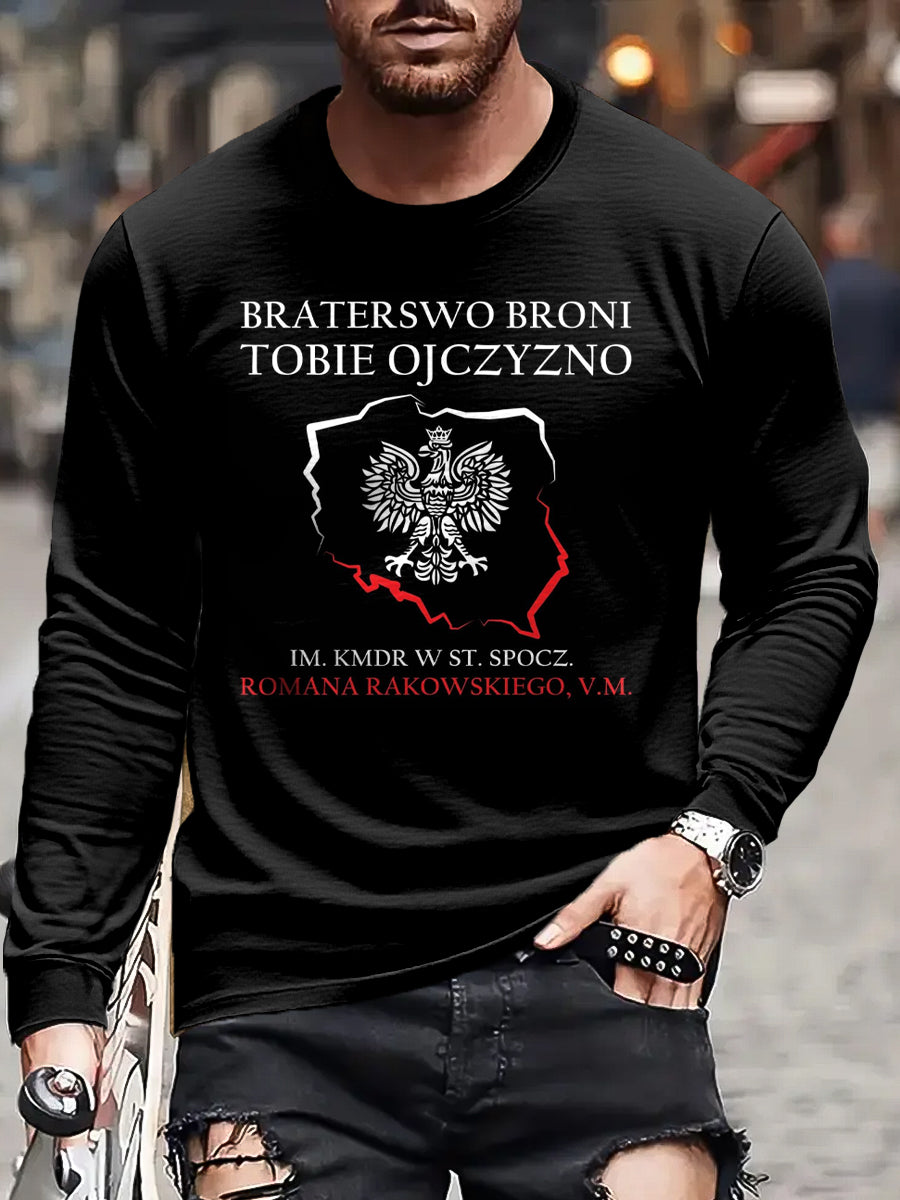Męskie Vintage Polski Orzeł Biały Mapa Abstrakcyjny Nadruk Casual Z Długim Rękawem