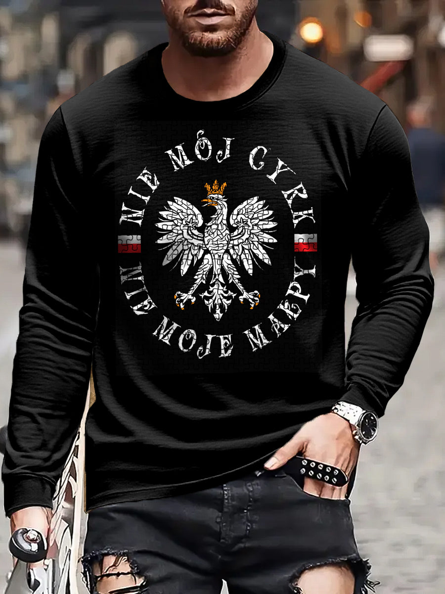 Męskie Vintage Streszczenie Flaga Polski Patriot Art Print Casual Koszulka z długim rękawem