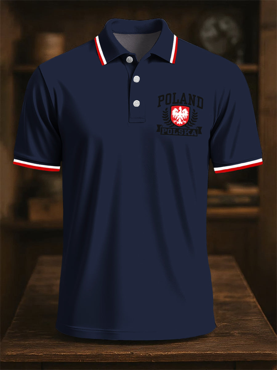 Retro Polski Godło Orła Klasyczna Patchwork Art Print Casual Biznesowa Koszulka Polo
