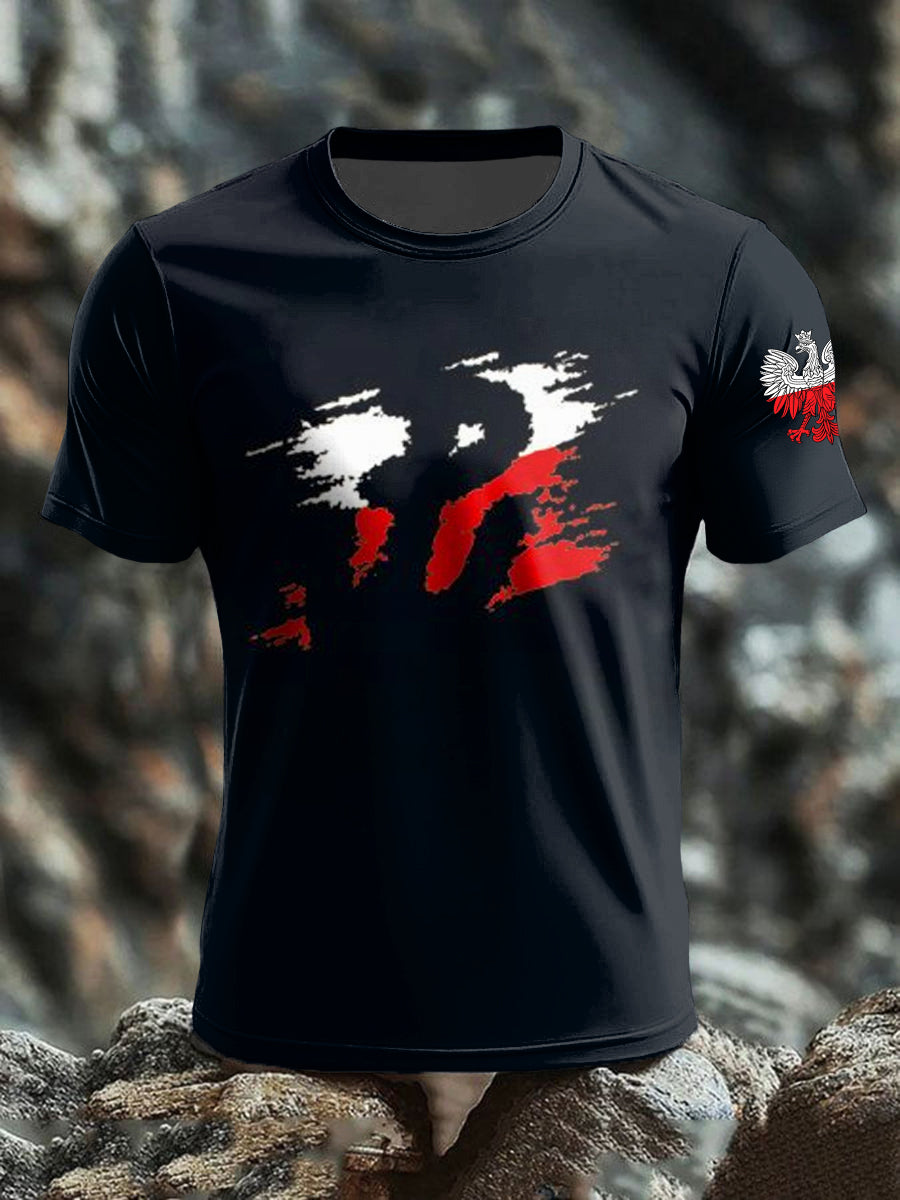 Vintage polski orzeł flaga patriot abstrakcyjny nadruk casual T-Shirt