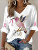 Vintage Vintage Hummingbird Kolorowe Perły Piersi Rak Nadruk Casualowa Bawełna Długi Rękaw T-Shirt